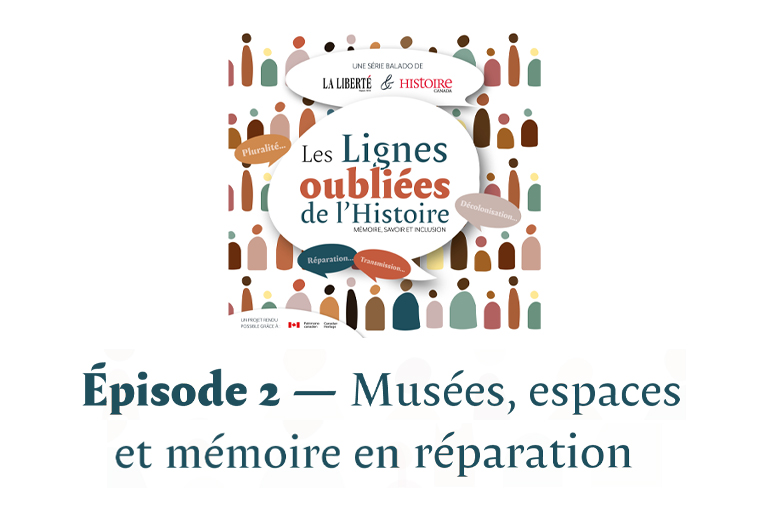 Les lignes oubliées de l’Histoire est une série balado coproduite par La Liberté et Histoire Canada, qui propose de revisiter certains pans de l’histoire du Canada à partir de voix, de récits et de perspectives longtemps marginalisés. En explorant les sphères de l’éducation, des musées, des médias et de l’espace public, la série questionne la manière dont se construit la mémoire collective — et ce que nos choix de récits et nos silences révèlent de nos sociétés.