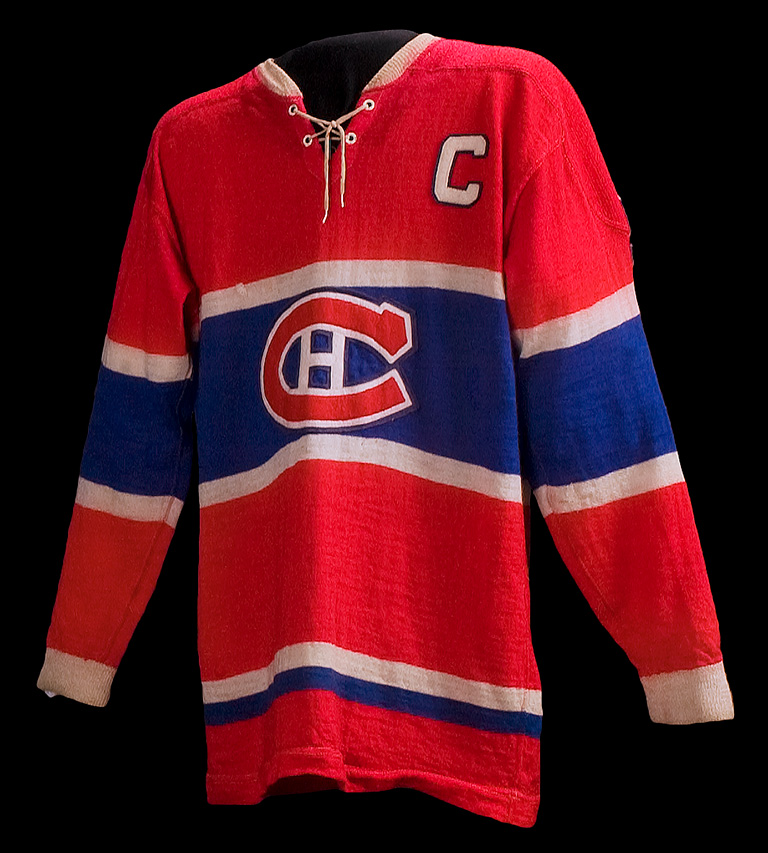 Le légendaire hockeyeur des Canadiens de Montréal, Maurice Richard (1921–2000), portait ce chandail lors du match de la victoire en finale de la coupe Stanley en 1959. L’arrivée de Maurice Richard, surnommé « le Rocket » par son coéquipier Raymond Getliffe en raison de son jeu de patin vif comme l’éclair, apporte en 1942 un nouveau soufflé à l’équipe des Canadiens de Montréal fondée en 1909.