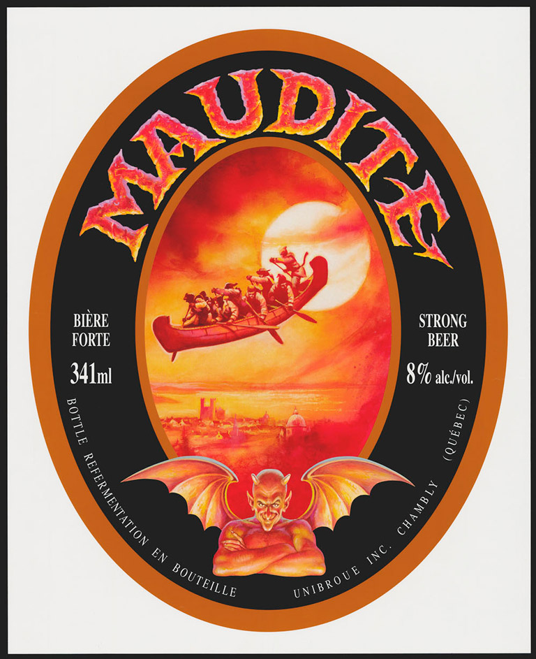 Aujourd’hui, l’histoire est évoquée sur l’étiquette d’une bière forte du Québec. La Maudite de la compagnie Unibroue a été lancée en 1992. La brasserie a utilisé l’image de la « Chasse-galerie » pour traduire l’idée d’un pacte avec le diable, puisqu’il s’agissait de la première bière forte (huit pour cent d’alcool) à être vendue dans les supermarchés du Québec.