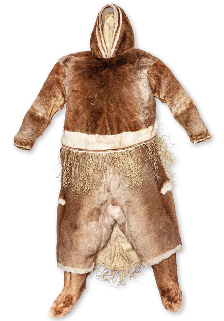 Cet habit complet en fourrure de loup marin (ou phoque du Groenland) appartenait au capitaine Joseph-Elzéar Bernier (1852–1934). Ce navigateur des mers polaires s’était fixé le but de conquérir le pôle Nord et de déterminer un tracé plus précis de la limite septentrionale du Canada afin d’y préserver sa souveraineté. Il s’agissait de briser les velléités expansionnistes des Américains qui venaient de renégocier les frontières de l’Alaska et souhaitaient tirer profit de l’imprécision des tracés frontaliers des Territoires du Nord-Ouest, transférés au Canada par la Couronne britannique en 1880.