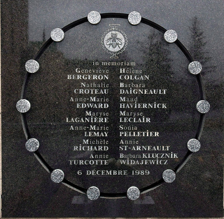 Le 6 décembre 1989, un jeune homme animé par la rancœur et armé d’un fusil semi-automatique camouflé dans un sac à ordures noir entre dans le bureau du registraire de l’École Polytechnique, l’école d’ingénierie de l’Université de Montréal, et s’effondre dans un fauteuil vide. Il est un peu passé 16 h, il fait froid et il neige dehors, la noirceur s’installe.