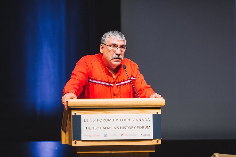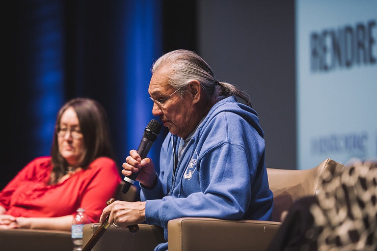 Aîné Noel Starblanket participe à une table ronde lors du Forum Histoire Canada.Brittany Gawley -