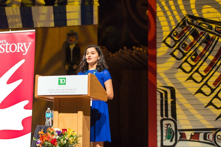 Avah Solomon, représentante des lauréats du programme Jeunes Citoyens de 2017, porte un toast aux visionnaires lors du gala Histoire en marche.Brittany Gawley