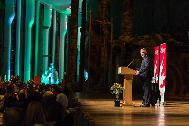 Mark O'Neill, président et directeur général au Musée canadien de l'histoire, s’adresse aux convives lors du gala Histoire en marche.Brittany Gawley -