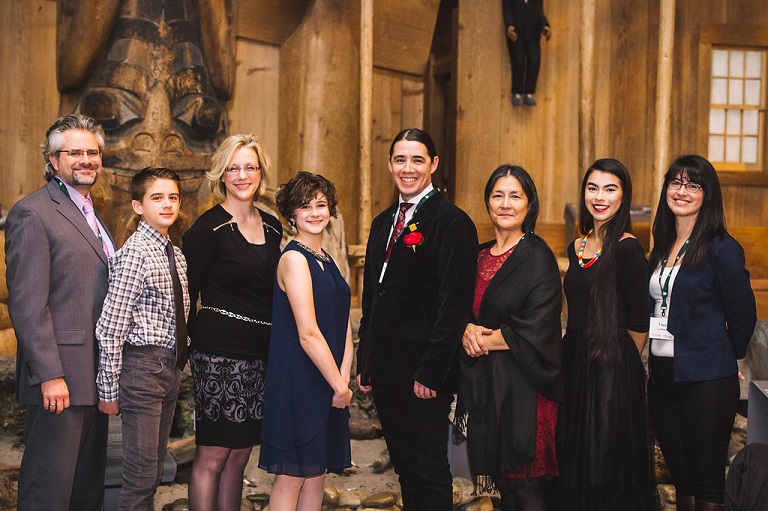 Mackenzie Anderson (au milieu), lauréate du prix Arts et récits autochtones, avec ses invités au gala Histoire en marche.Brittany Gawley -