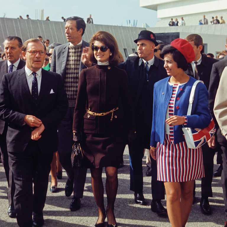 La première dame des États-Unis, Jackie Kennedy, au centre, visite le site en octobre 1967.Bibliothèque et Archives Canada et Expo 67 Mission Impossible -