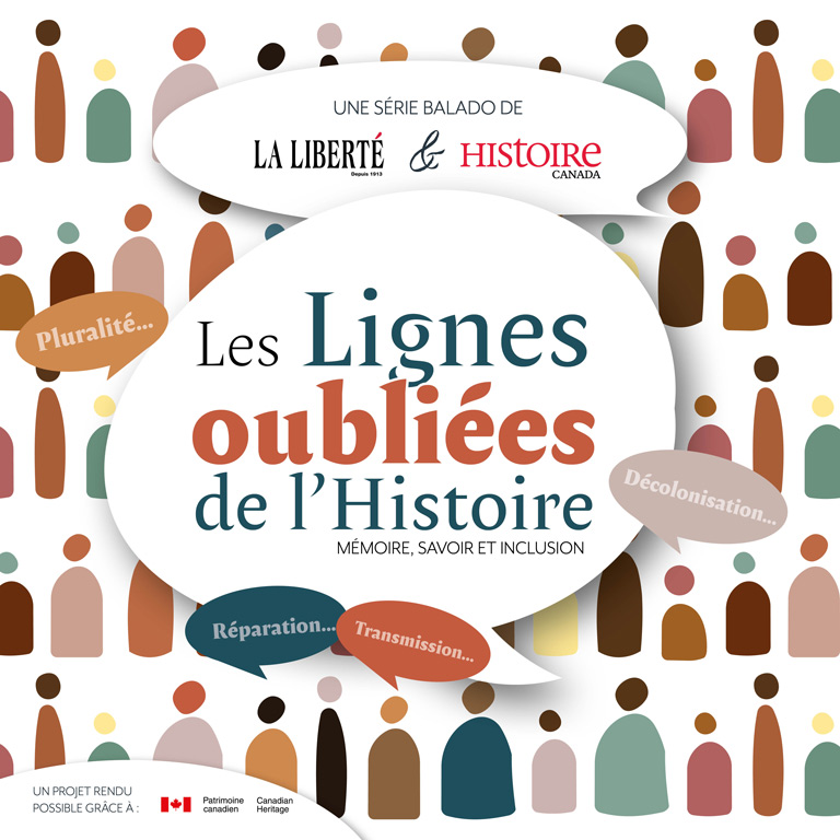 Les lignes oubliées de l’Histoire est une série balado coproduite par La Liberté et Histoire Canada, qui propose de revisiter certains pans de l’histoire du Canada à partir de voix, de récits et de perspectives longtemps marginalisés. En explorant les sphères de l’éducation, des musées, des médias et de l’espace public, la série questionne la manière dont se construit la mémoire collective — et ce que nos choix de récits et nos silences révèlent de nos sociétés.
