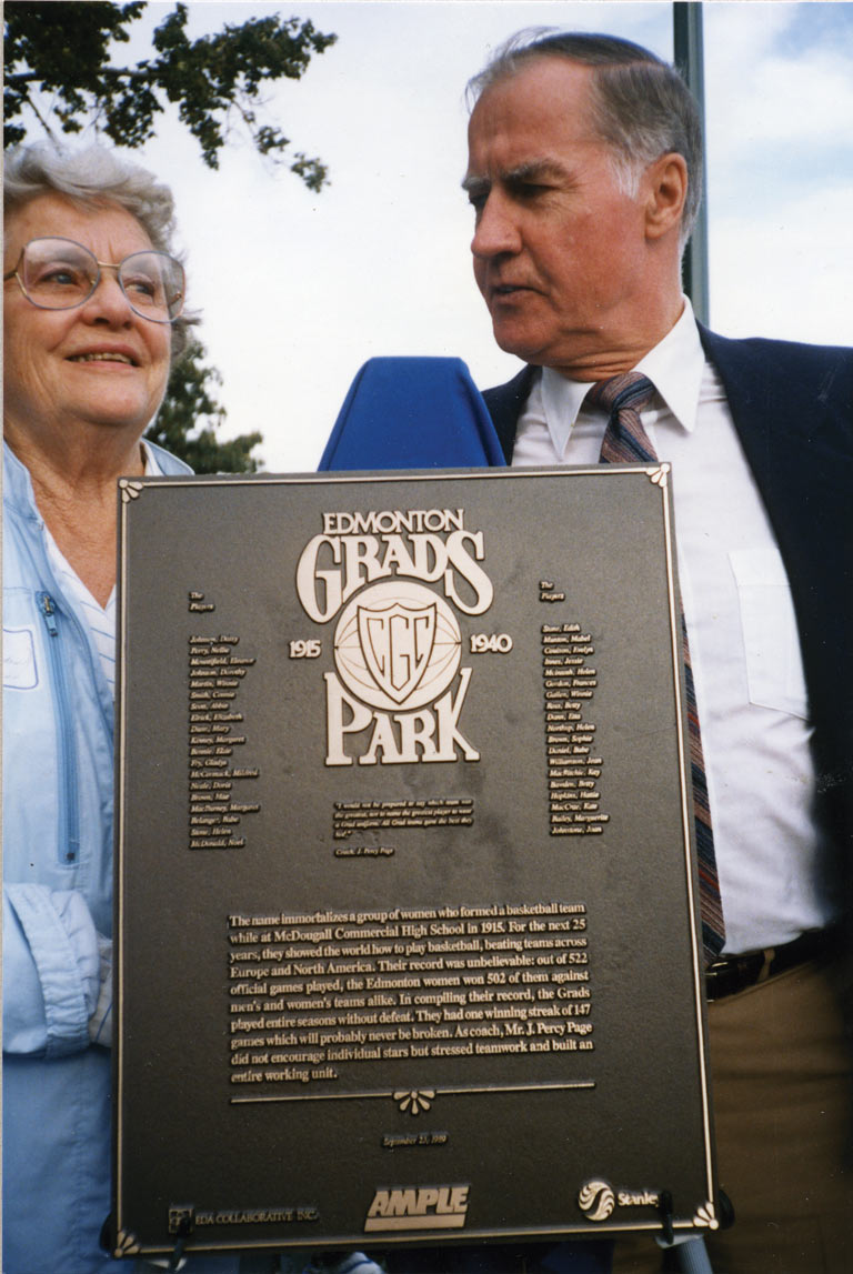 Le directeur John Percy Page (surnommé Percy) a introduit le basket-ball féminin à l’école secondaire McDougall Commercial d’Edmonton en 1914 dans le cadre de ses cours d’éducation physique. À l’époque, ce sport n’existait que depuis 23 ans. Faisant partie de la nouvelle ligue scolaire féminine de la ville, l’équipe de Commercial a battu les trois autres écoles et remporté le championnat. Elle a également dominé le tout nouveau championnat provincial de l’Alberta. Plusieurs élèves qui obtenaient leur diplôme de Commercial et qui faisaient partie de l’équipe voulaient continuer à jouer au basket-ball et ont persuadé M. Page d’entraîner une équipe municipale, qu’elles ont baptisée les Edmonton Commercial Graduates.