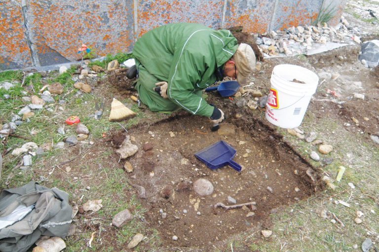 Un archéologue recherche des artéfacts au lieu historique national du Fort-Prince-de-Galles, près de Churchill, au Manitoba.Parcs Canada -