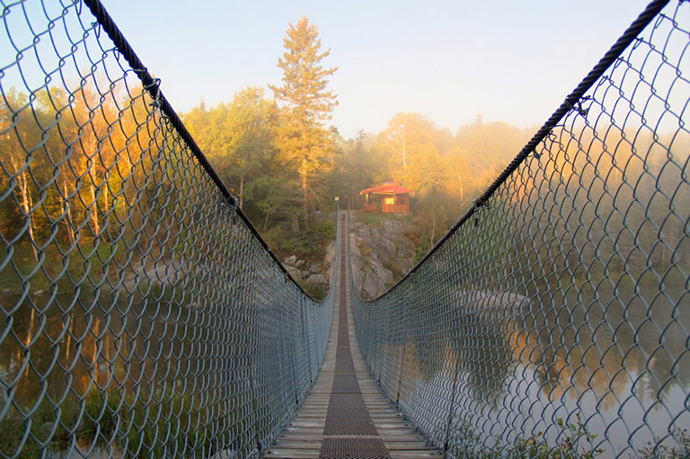 Le matin très tôt, sur le pont suspendu de Pinawa.Nancy Bremner -